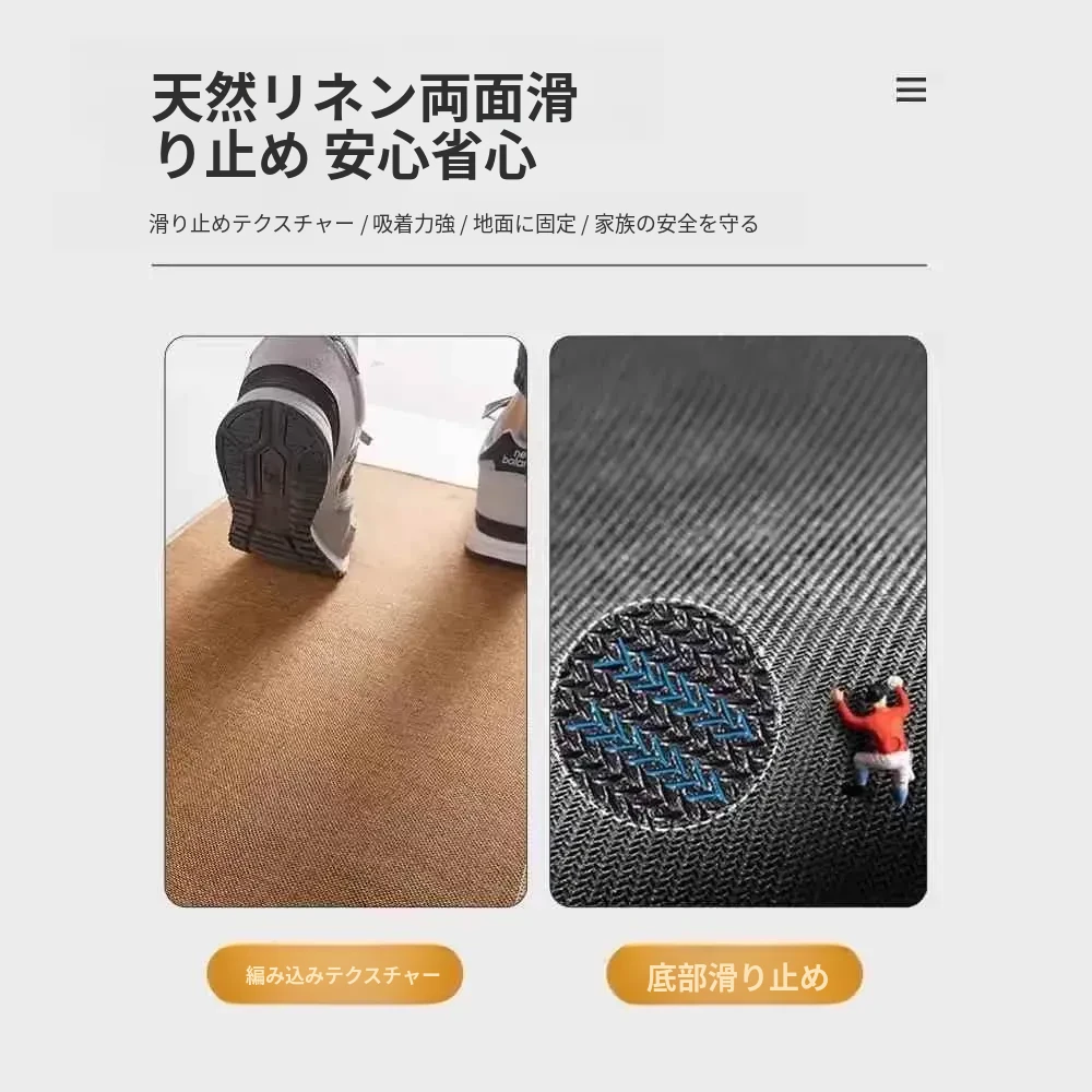 スウェーデンStock製 日本風玄関マット リネン素材 カット可能なドアマット 自然木風 滑り止め効果抜群のエントランスカーペットで、快適な入室を演出!