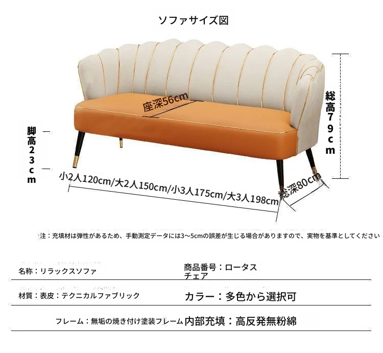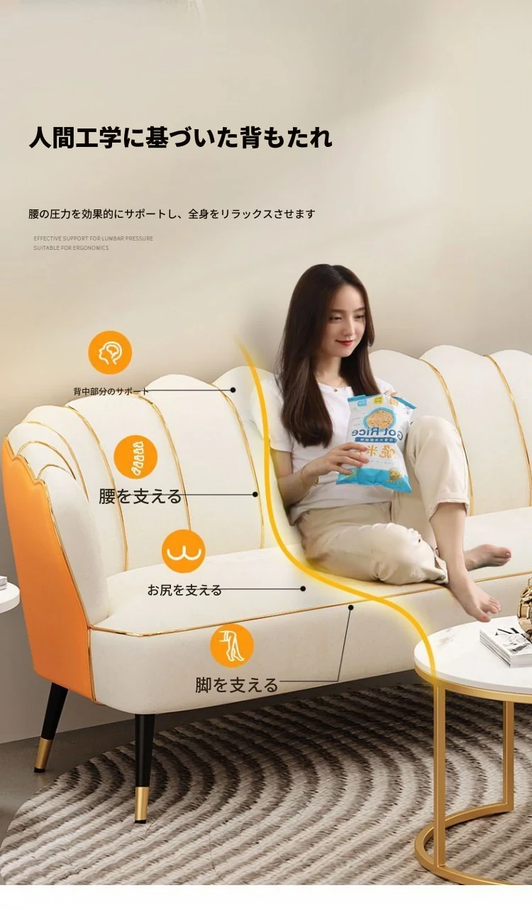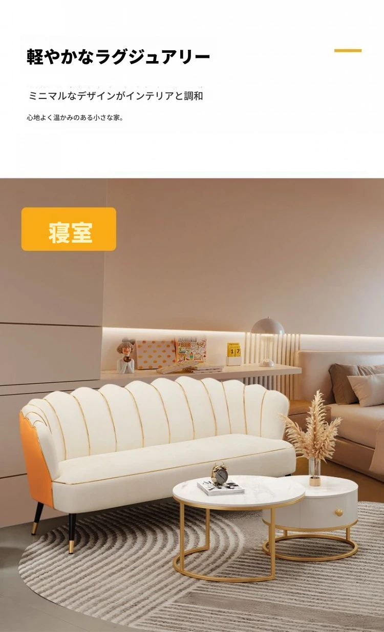 人気の軽奢テクノロジー布製ロータスソファー - 小型住宅やアパート、エステサロン、洋服店に最適!おしゃれでコンパクトな二人掛けソファで、居心地の良い空間を演出します。