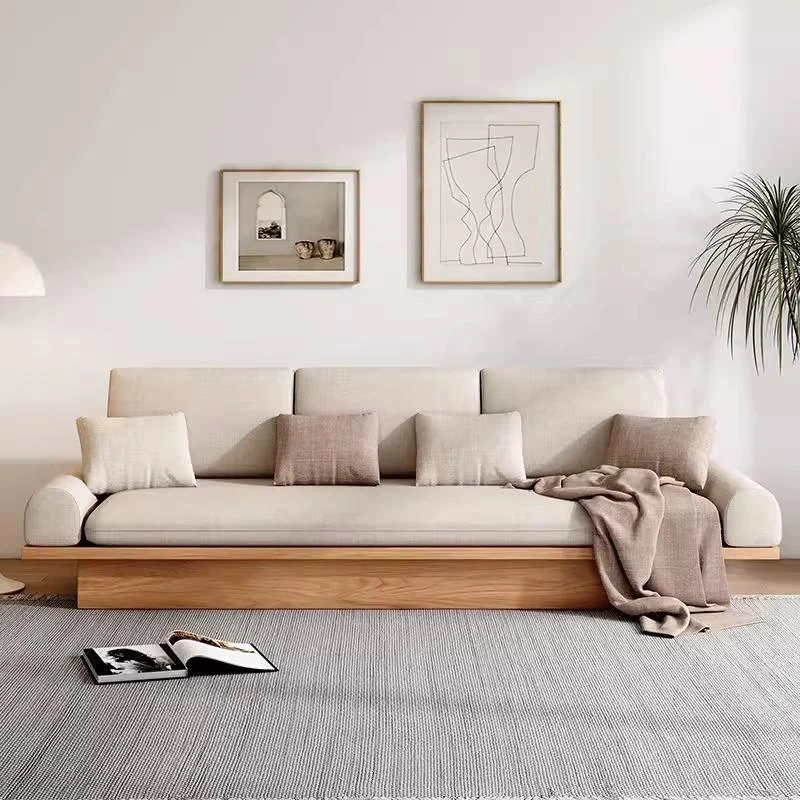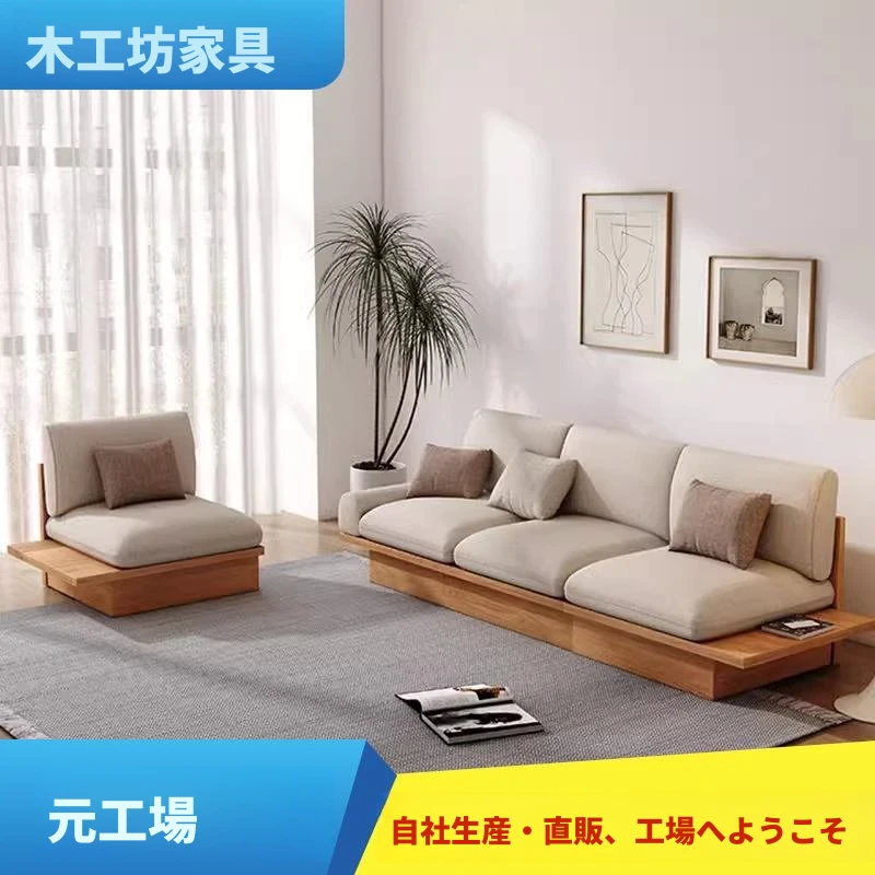 侘寂スタイルの無垢材ソファ - 和風の原木仕上げ、3人掛けモダンミニマリスト&北欧デザイン、収納機能付きソファセットでお部屋をおしゃれに演出!