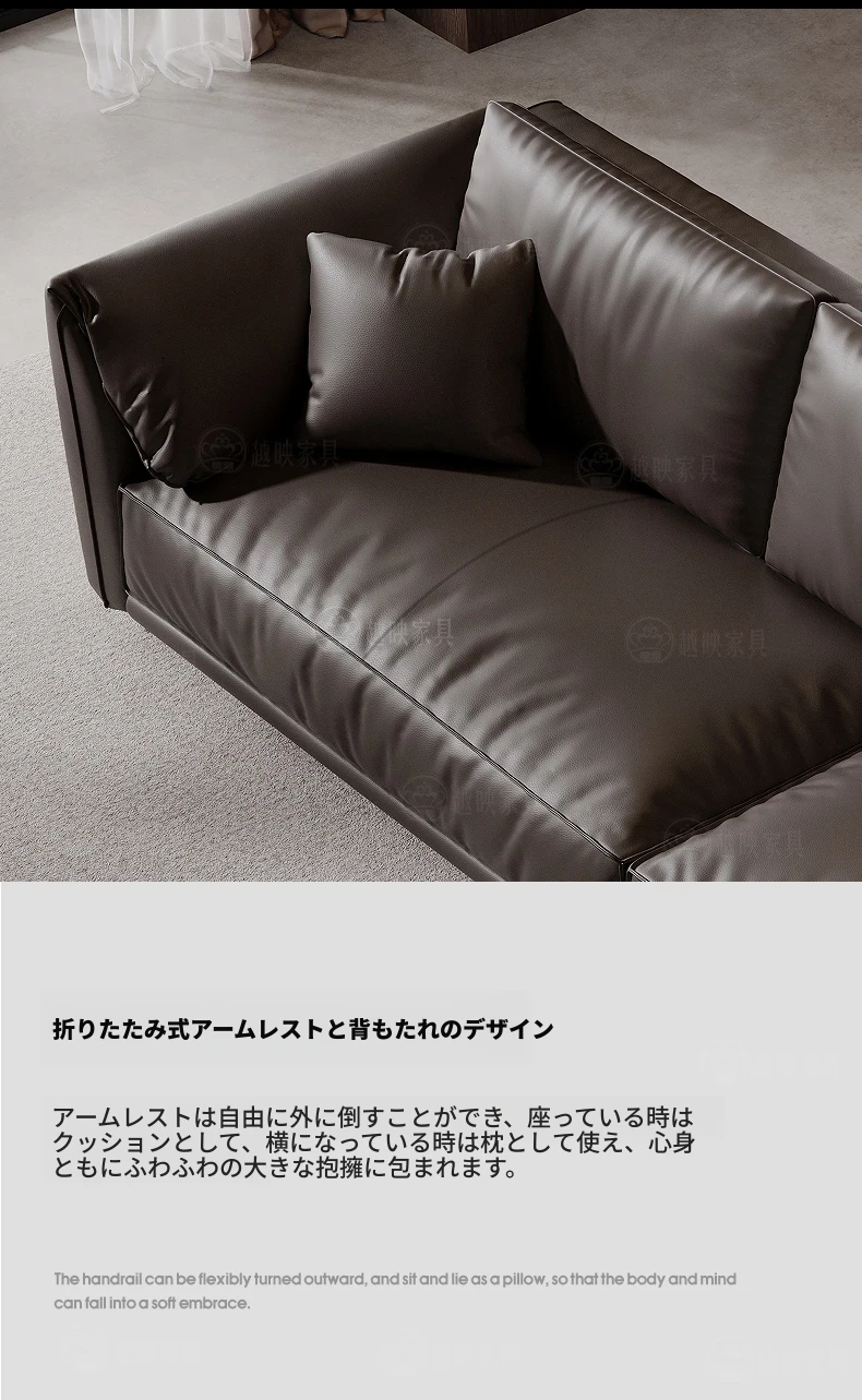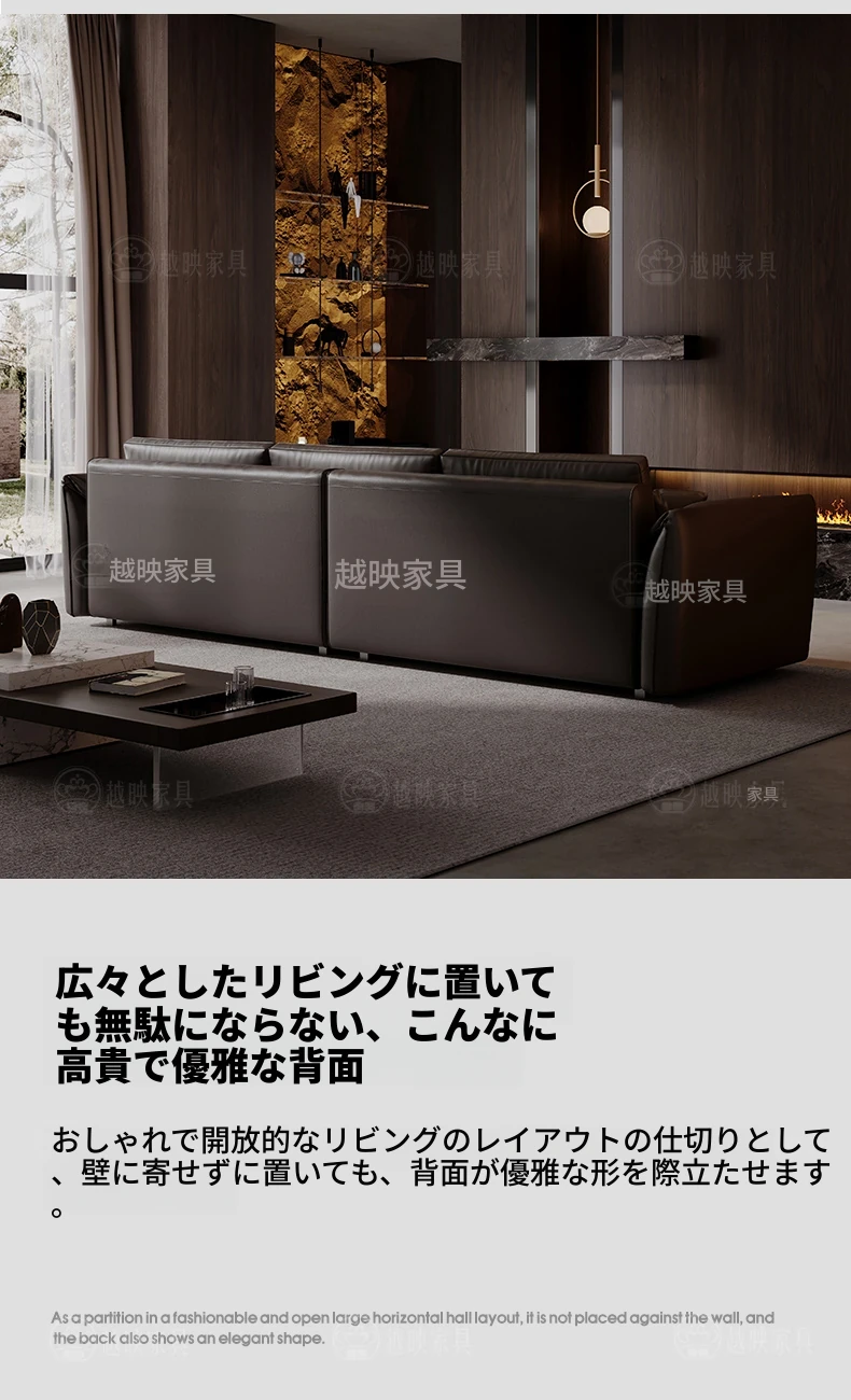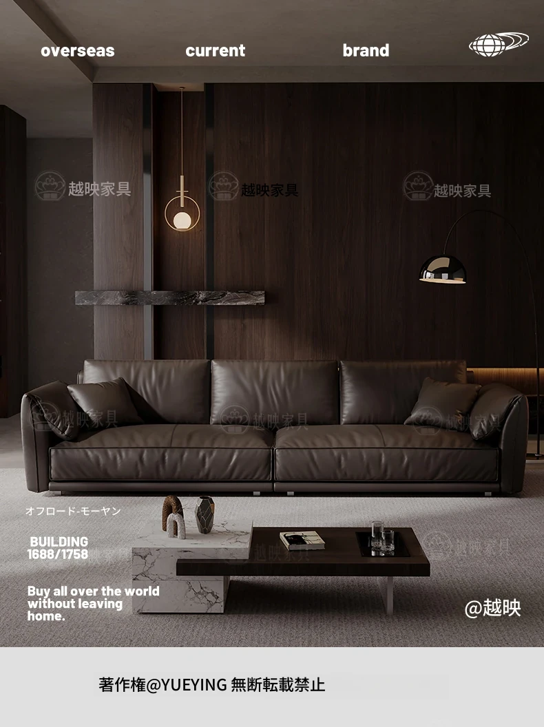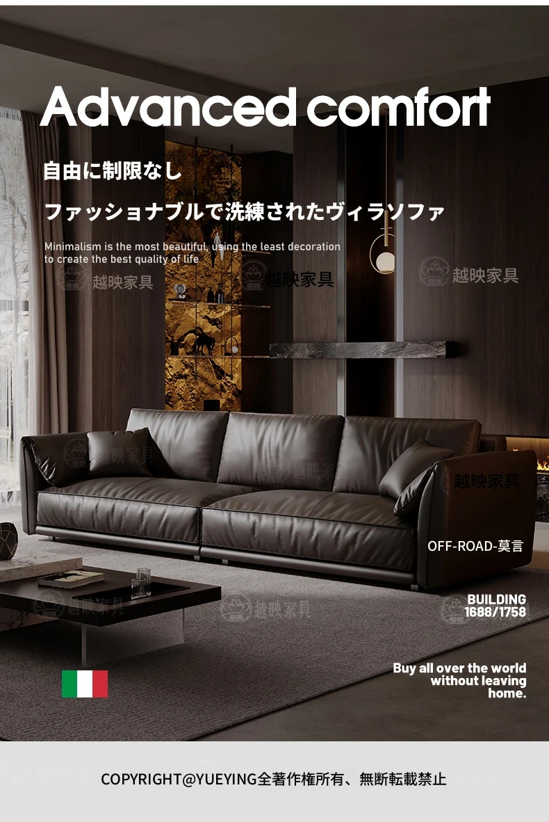 越映愛楼のウィサソファ、リビングルームに最適な全青皮デザイン!イタリアンミニマルスタイルのハーフ青皮&ブラックモダンレザーソファで、洗練された空間を演出します。贅沢な座り心地を体感してください!