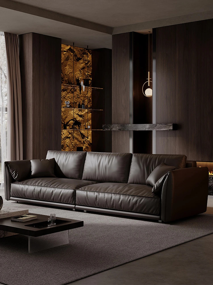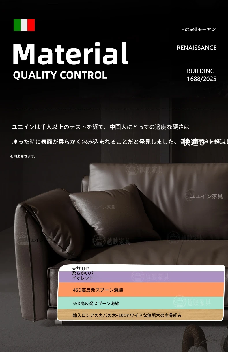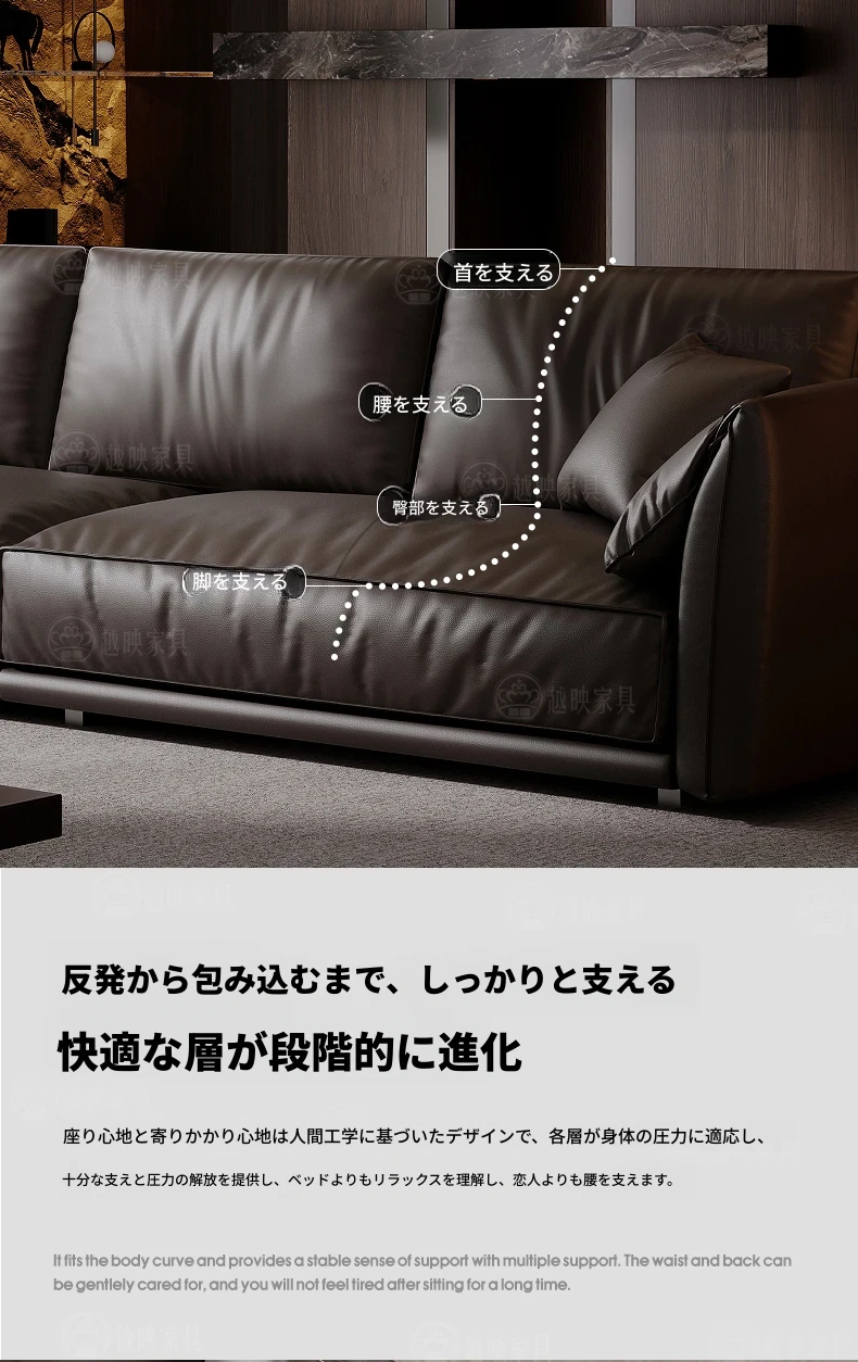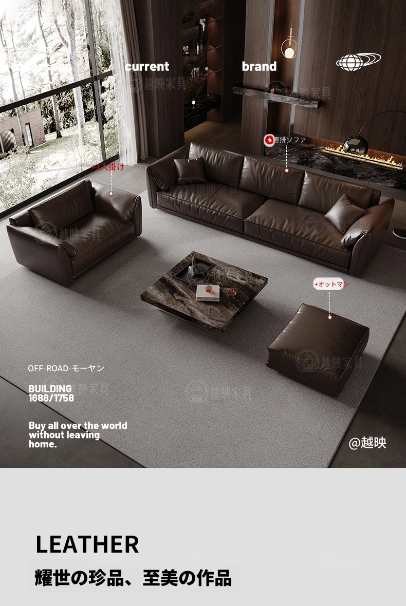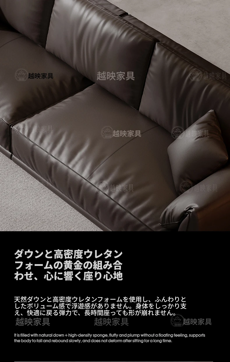 越映愛楼のウィサソファ、リビングルームに最適な全青皮デザイン!イタリアンミニマルスタイルのハーフ青皮&ブラックモダンレザーソファで、洗練された空間を演出します。贅沢な座り心地を体感してください!
