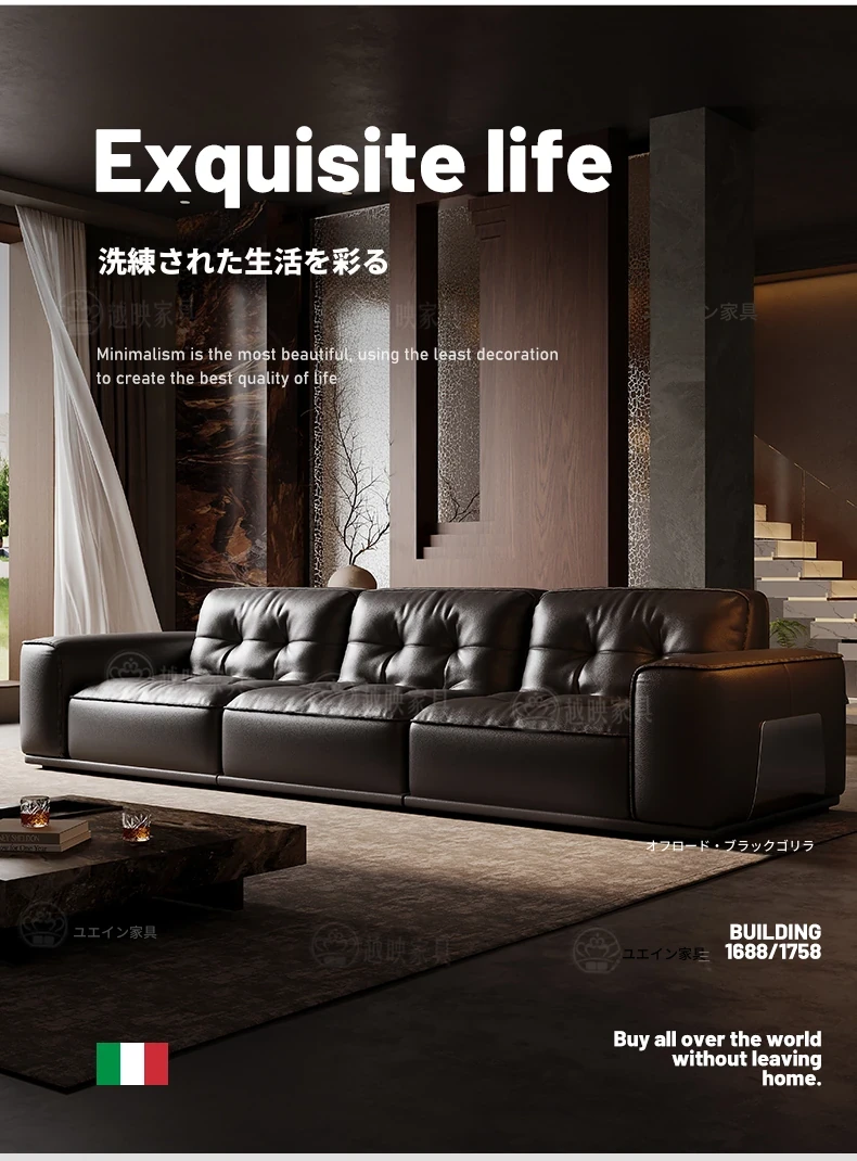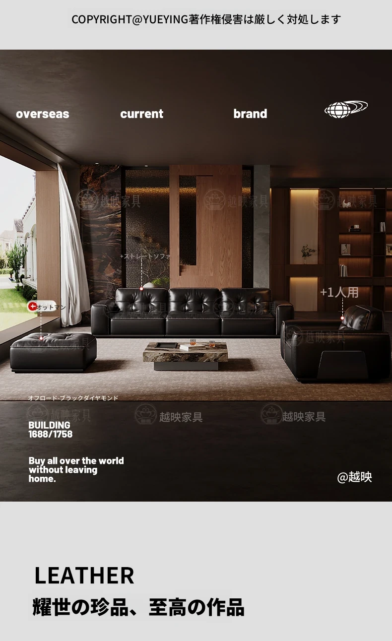 越映ブラックゴールド本革ソファ イタリアンミニマルデザイン 高級感あふれる全青皮 ブラック色 リビングにぴったりなコンパクトサイズ