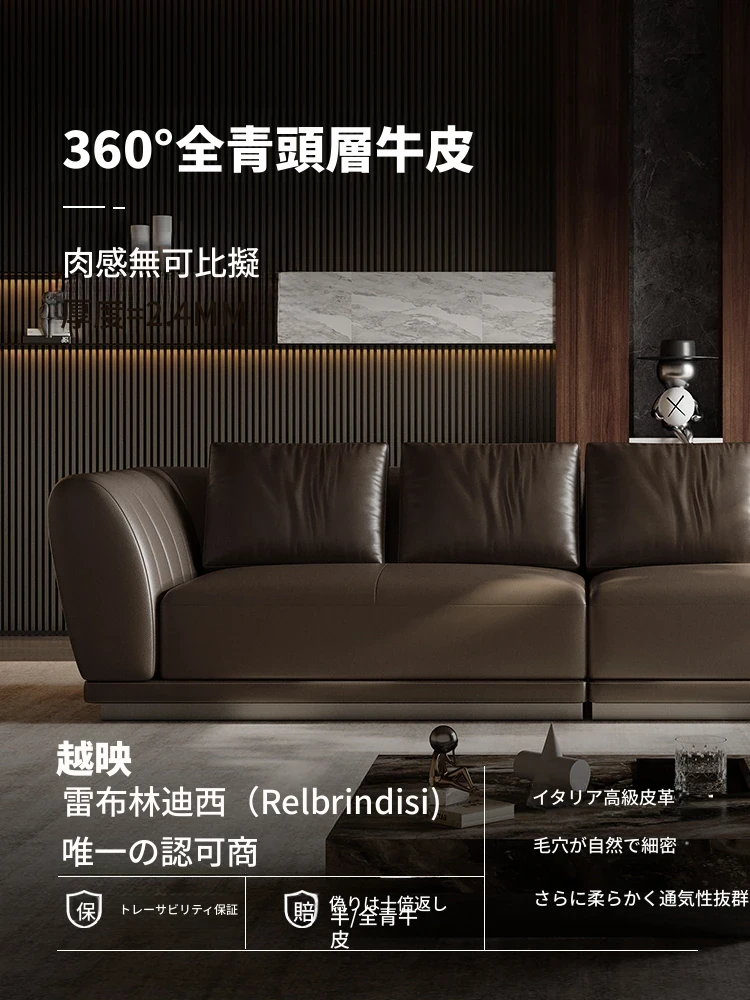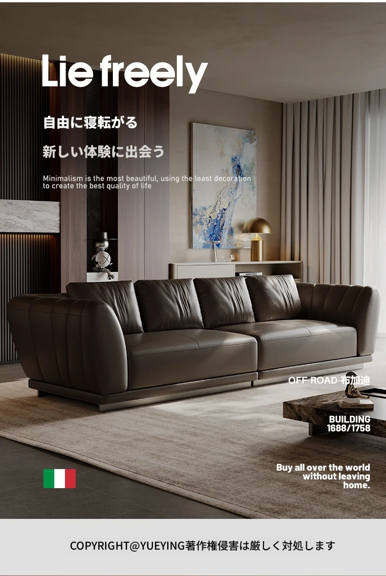 越映布佳迪本革ソファ - イタリアンミニマリズムの極み!2025年新作、全皮仕様で高級感溢れるリビングにぴったり。小型住宅にも最適な洗練されたデザインで、あなたの空間を格上げします!