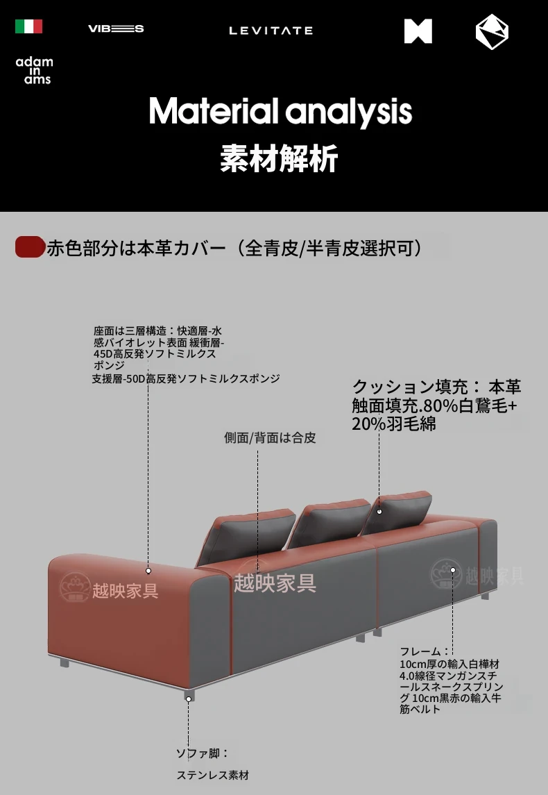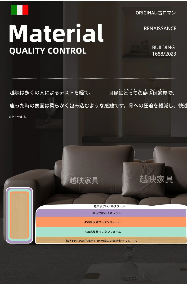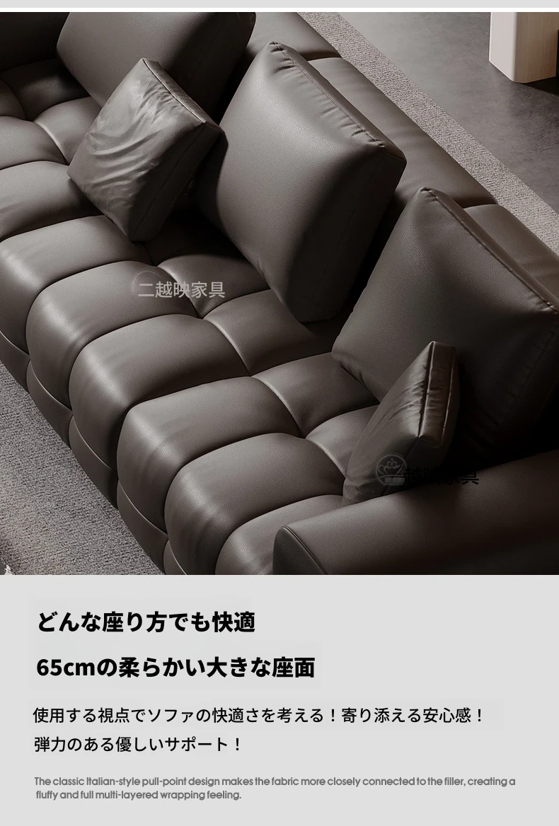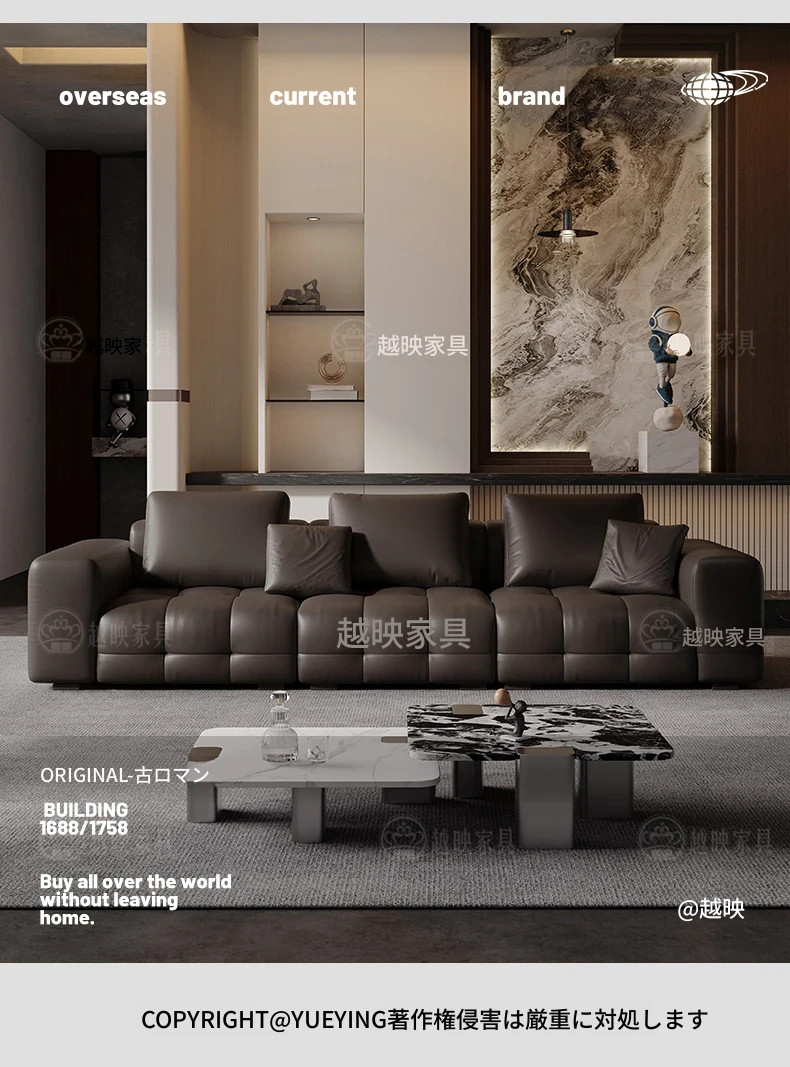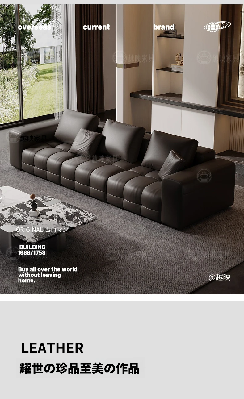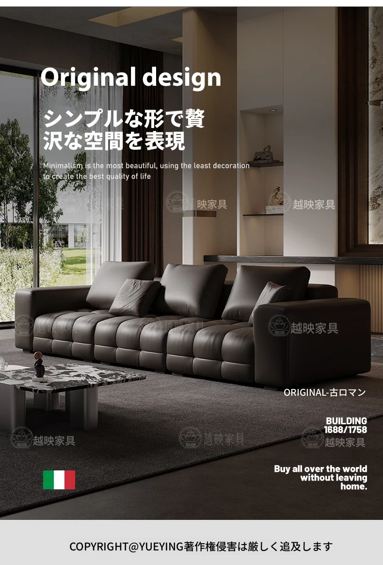 越映古ロマン真皮ソファ - イタリアンミニマルデザイン、モダンで洗練された小型リビングに最適な高級デザイナーソファ。シンプルさと快適さを兼ね備えた極上の一品。