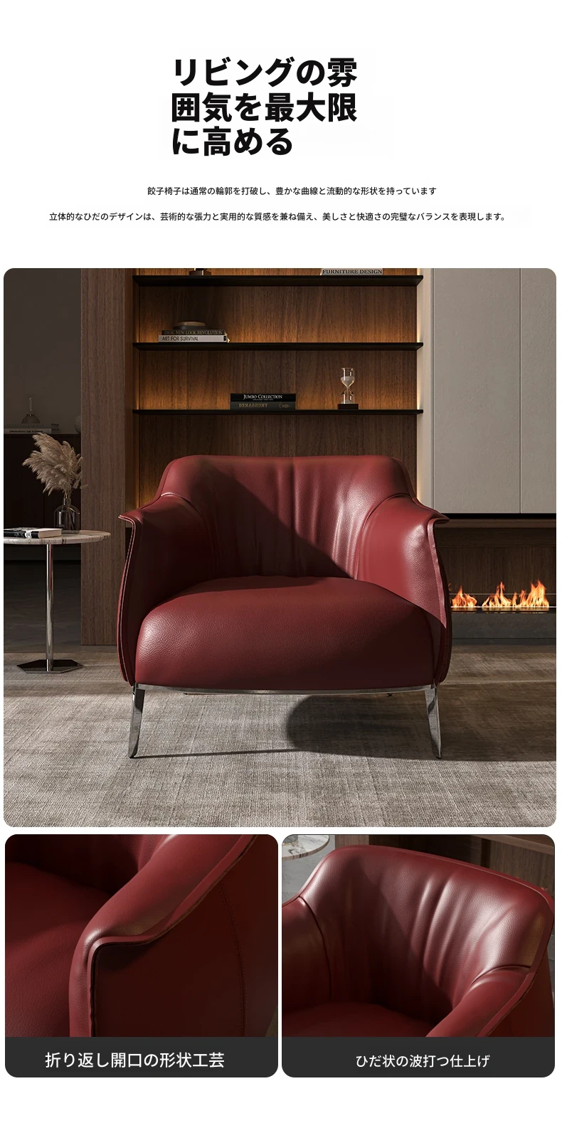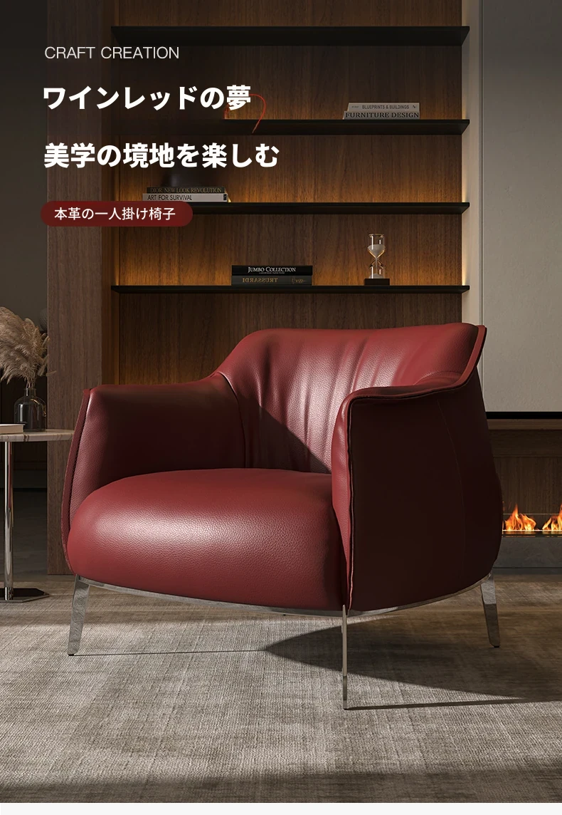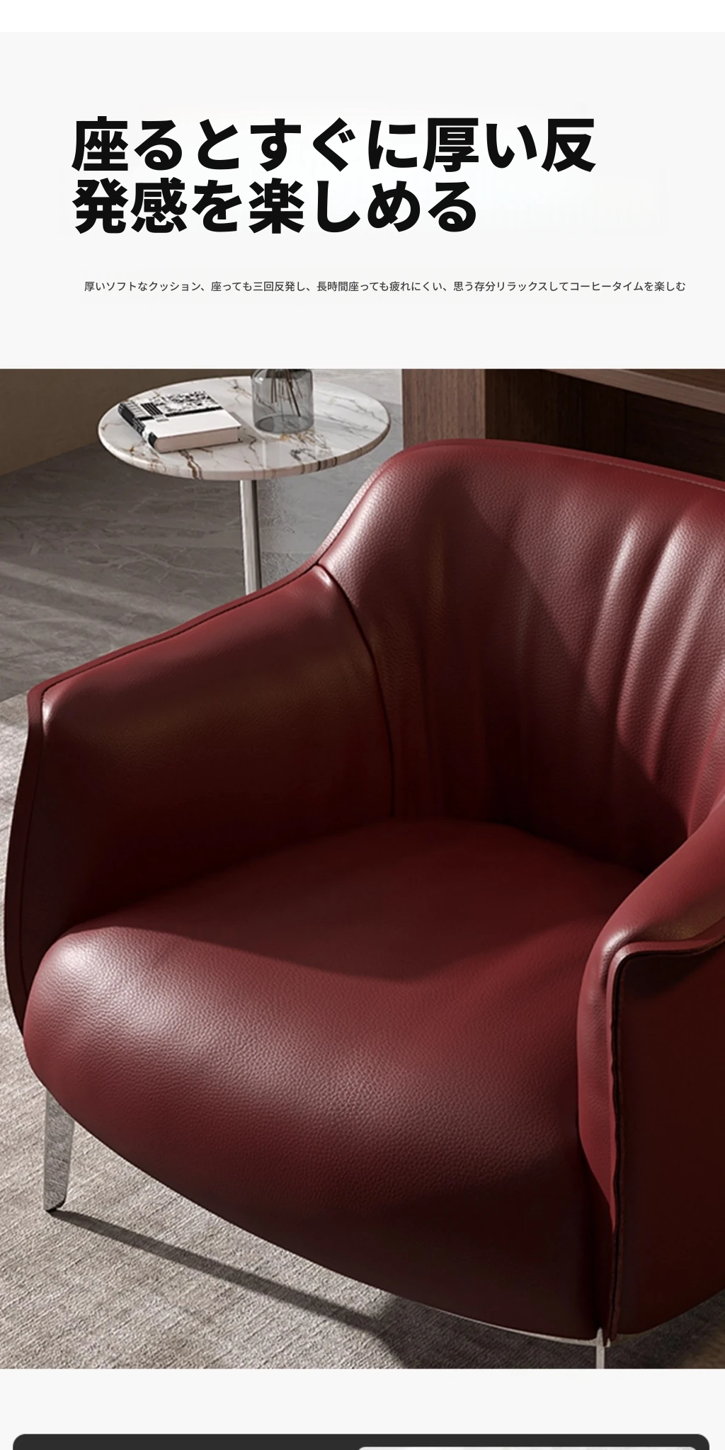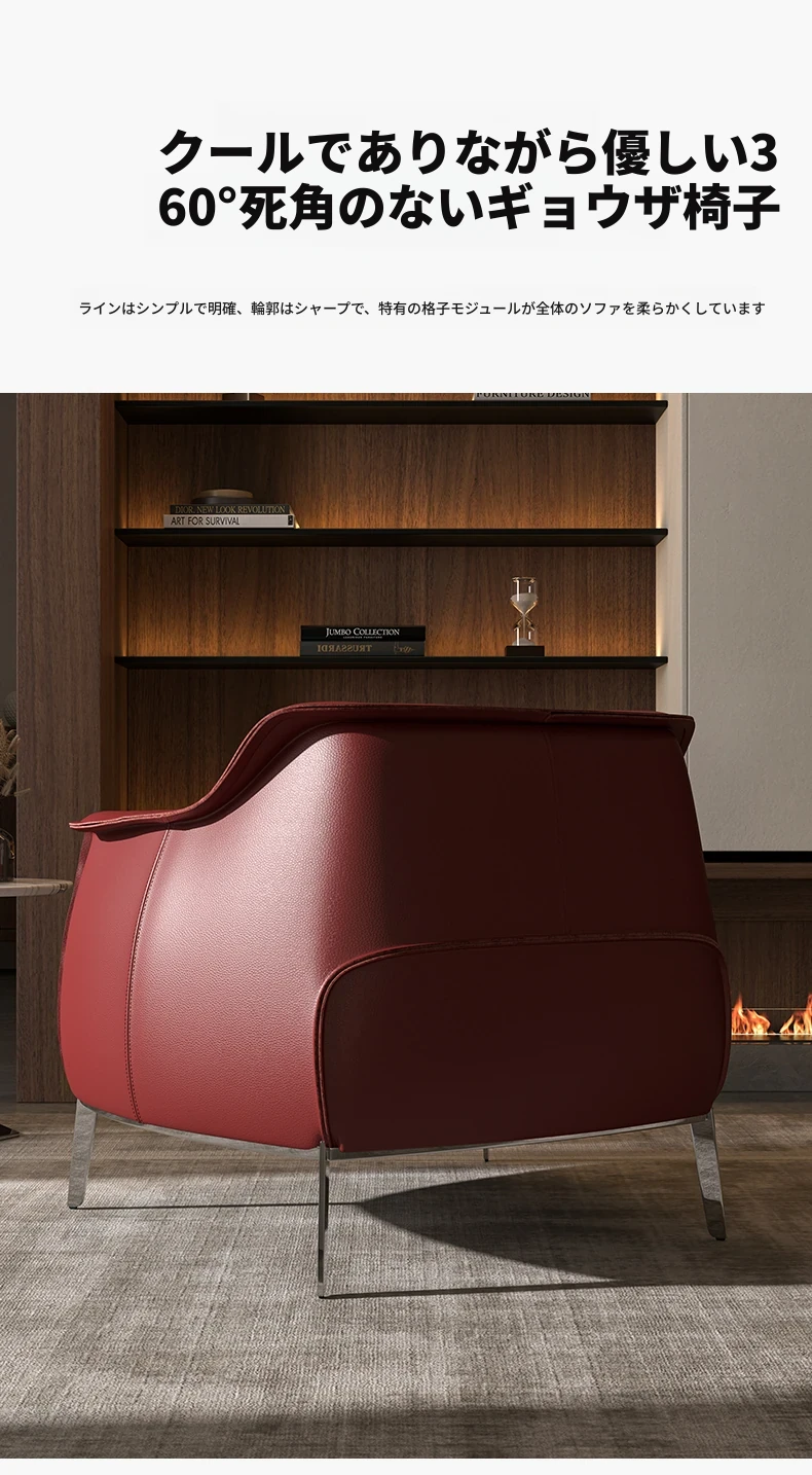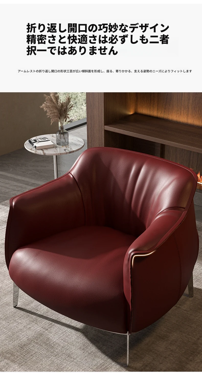 越映全青皮単椅 - 本革イタリアンミニマリズムデザイン、ラグジュアリーな一人掛けリラックスチェア。洗練された高級感で、あなたのリビングルームに特別な雰囲気をプラス!