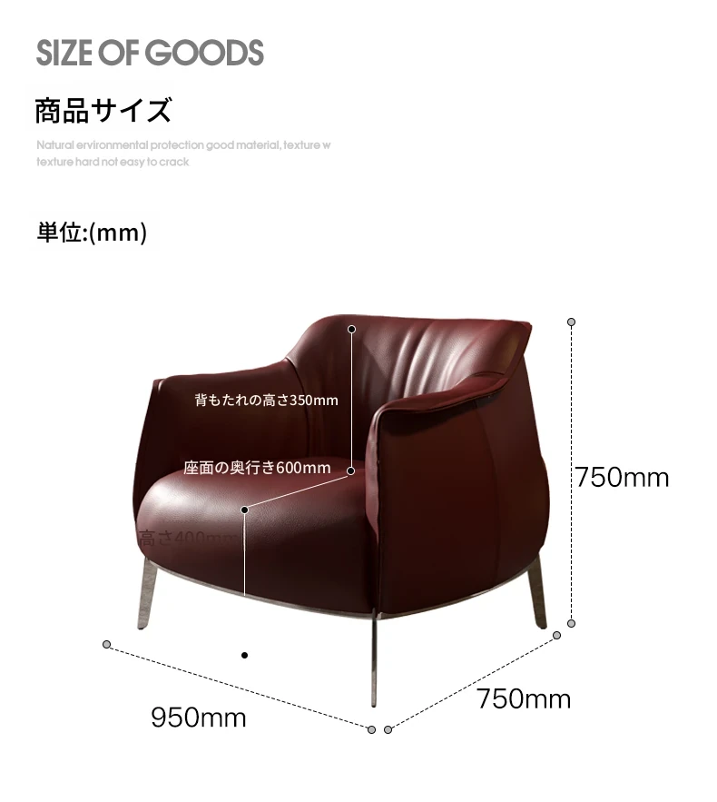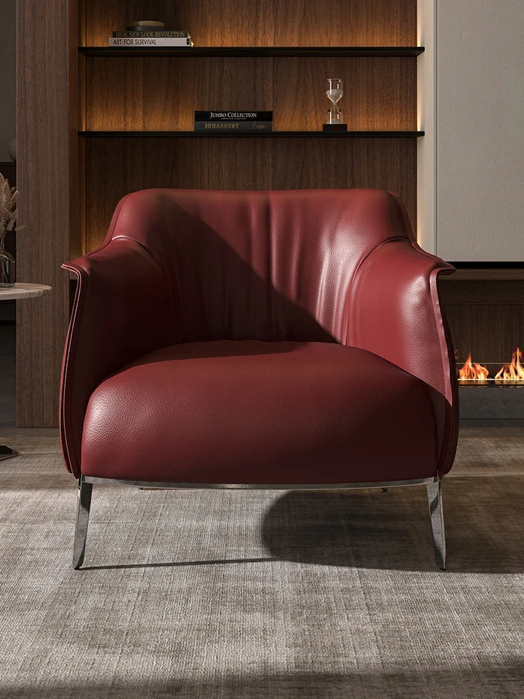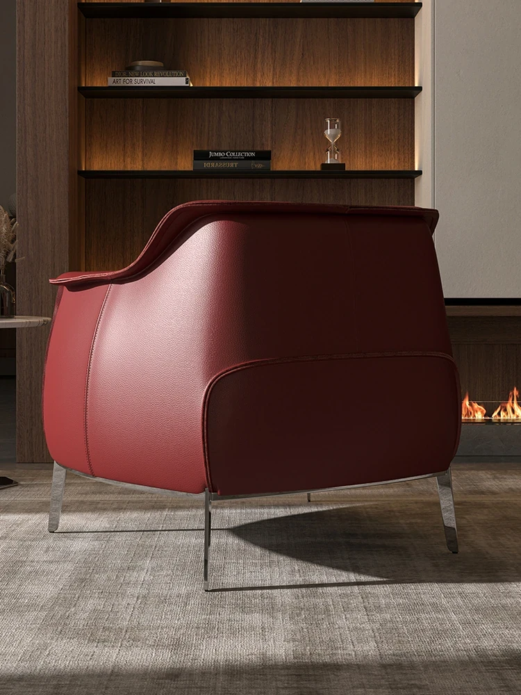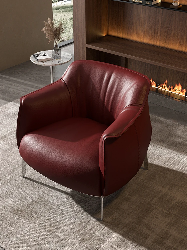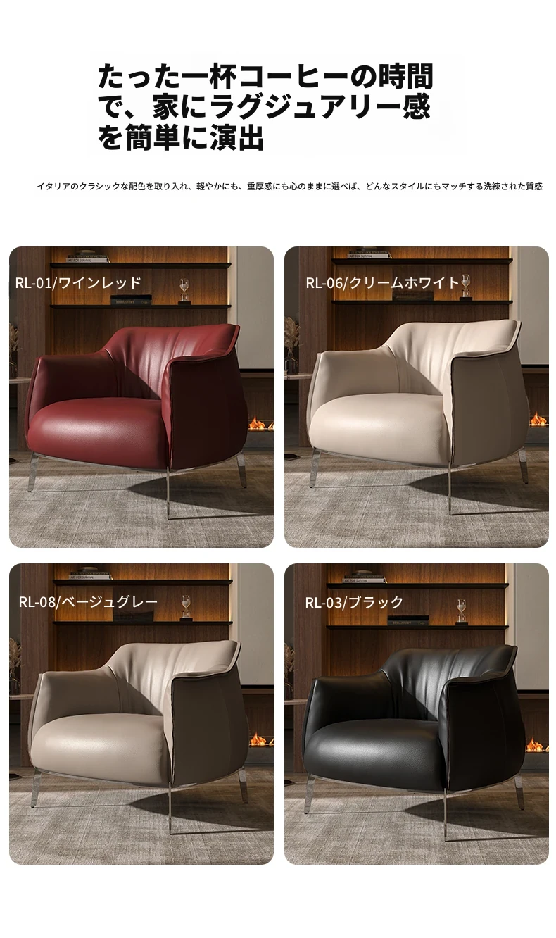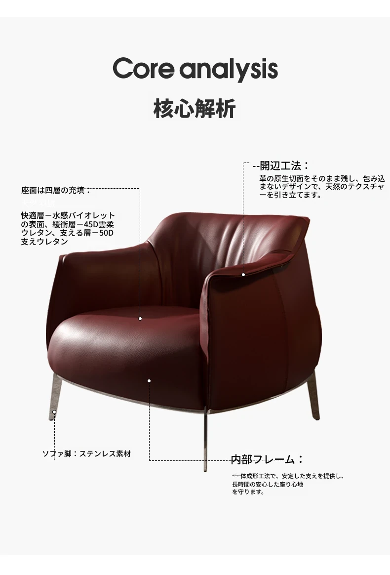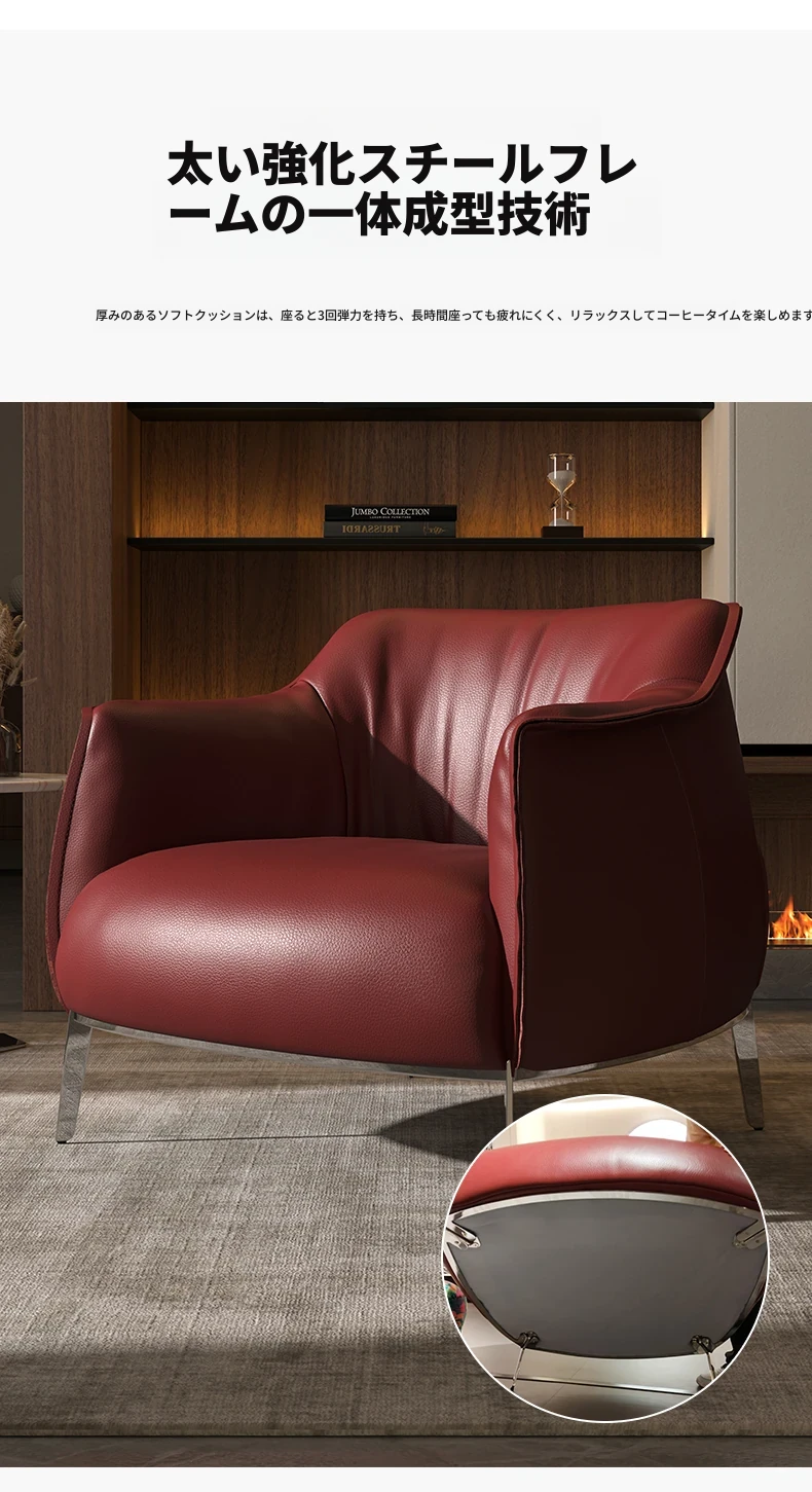 越映全青皮単椅 - 本革イタリアンミニマリズムデザイン、ラグジュアリーな一人掛けリラックスチェア。洗練された高級感で、あなたのリビングルームに特別な雰囲気をプラス!