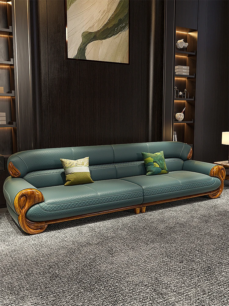 高級ウッドソファー | モダン新中式デザイン | 本革使用のウルジン木製ソファ | ヴィラのリビングにぴったりな実木製 | 一流の牛革コンビネーション | 贅沢な空間を演出します!