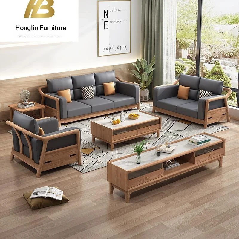 Modern Minimalist Solid Wood Sofa Set for Small and Medium Living Rooms - Elegant Ash Wood Furniture for Your Home