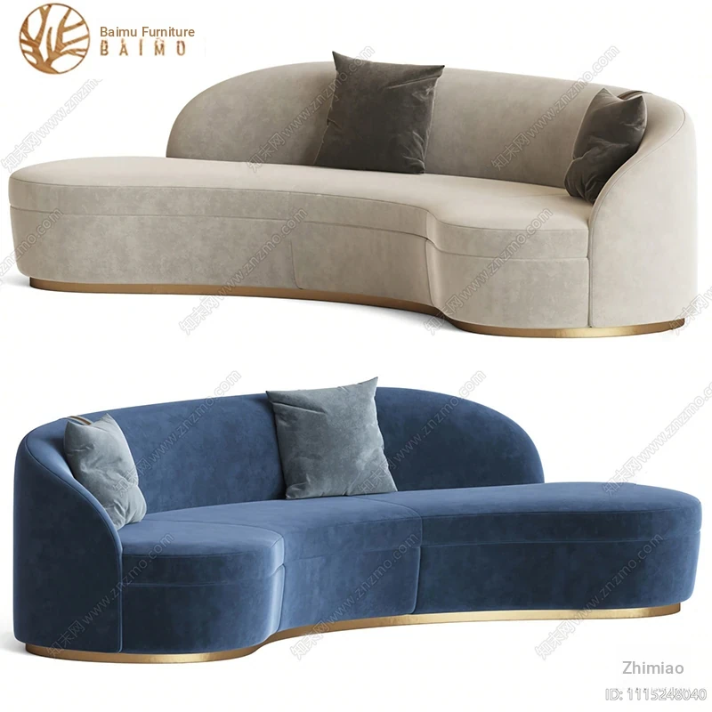 Italian Minimalist Curved Sofa - Stylish Corner Design for Living Room, Cotton-Linen and Genuine Leather, Unique Shaped Reception Couch for Villas and Modern Spaces