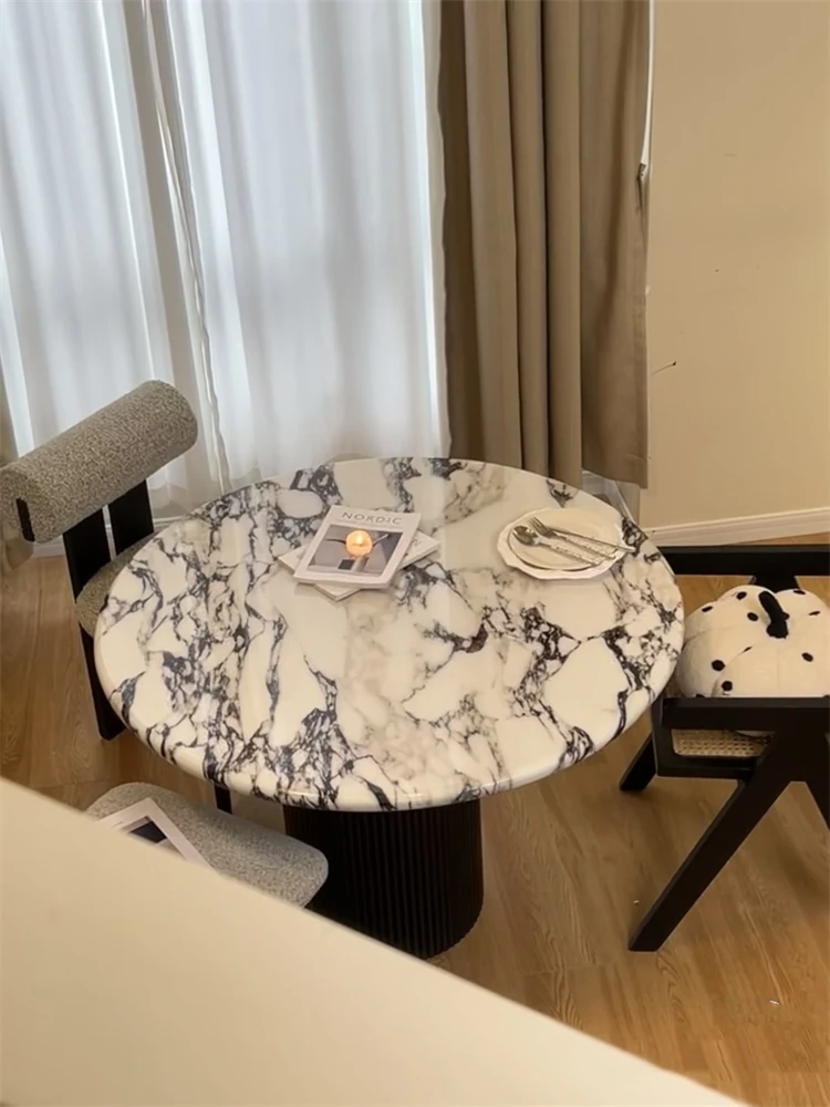 フレンチヴィンテージ・ブルガリ風ダイニングテーブル|家庭用・天然木製・コンパクトサイズ|モダンシンプルな円形大理石バルコニーテーブルでおしゃれな空間を演出!