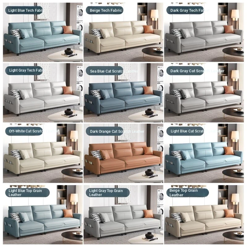 New Modern Minimalist Sofa for Small Living Rooms - Comfortable 3-Seater and 4-Seater Configurations with Cat Scratch-Resistant Leather and Latex Cushions